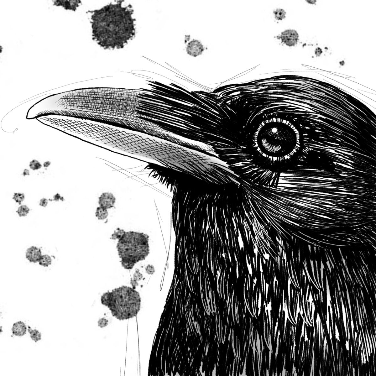 This inky crow is #3 in a series of 6. Crows are highly intelligent, and this one is definitely thinking about something! All of the Inky Crows are available as instant downloads, and are printed best up to 12"x12". Crow instant digital downloads are available individually in my Etsy Shop.