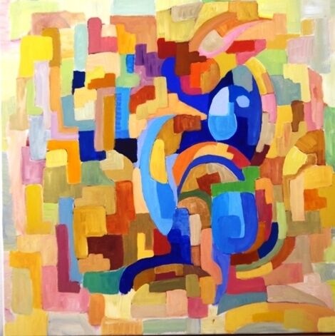 -Acrylique sur toile 80 x 80 - J'ai déstructuré les couleurs du plumage de l'oiseau pour laisser aller mon inspiration dans une recherche abstraite