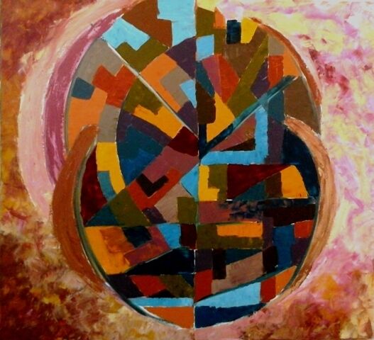 Acrylique sur toile 93 x 85 - Le taleau BIG BAND devient Jazz en bleu, puis Septet, septêtes et enfin What i say