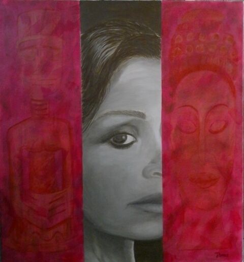 Acrylique sur toile 90 x 70 - 2016 - Les lignes de construction du corp sont travaillées comme un carrelage pour créer un fond et mettre en valeur la plastique du corp.